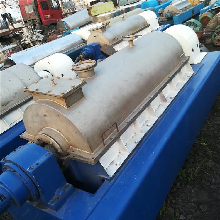 产品详情:离心机是:滚筒和螺杆以不同的速度沿相同方向转动。物料通过进料管连续地引入到输送螺杆的内筒中,然后在加快后进入滚筒。在离心力场的作用下,较重的固相物沉积坐落转鼓沉积层的壁上。输送螺杆不停将沉积的固相物推入转鼓的圆锥形端部,并通过转鼓将其从机器中排出。炉渣排出口。较轻的液相形成一个内部液环,该液体环从滚筒大端的溢流口连续溢出滚筒,并通过排出口排出机器外。该机器可以连续进给,分离具备构造连贯,连续运转,运行平稳,适应性强,生产能力大,维修便利等特征。适用于分离浓度范围为2-4的固相物粒度大于.5mm悬浮液。用以化工,轻工,制药,食品等行业