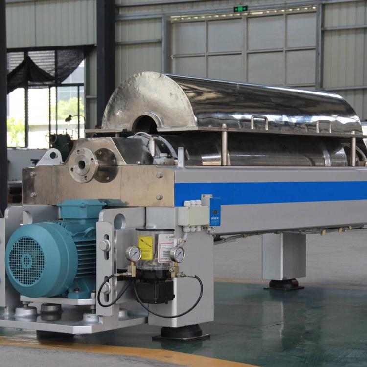产品详情:离心机是:滚筒和螺杆以不同的速度沿相同方向转动。物料通过进料管连续地引入到输送螺杆的内筒中,然后在加快后进入滚筒。在离心力场的作用下,较重的固相物沉积座落转鼓沉积层的壁上。输送螺杆不停将沉积的固相物推入转鼓的圆锥形端部,并通过转鼓将其从机器中排出。炉渣排出口。较轻的液相形成一个内部液环,该液体环从滚筒大端的溢流口连续溢出滚筒,并通过排出口排出机器外。该机器可以连续进给,分离具构造连贯,连续运转,运行平稳,适应性强,生产能力大,维修便利等特性。适用于分离浓度范围为2-4的固相物粒度大于.5mm悬浮液。用以化工,轻工,制药,食品等行业